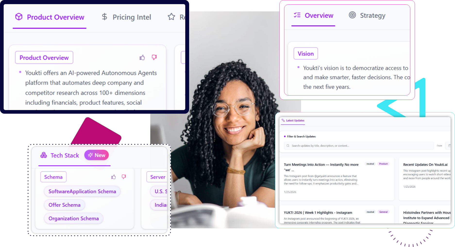 Get 100+ parameters researched across firmographics, products, financials, tech stack, hiring, competitors, and real-time signals—all within seconds.