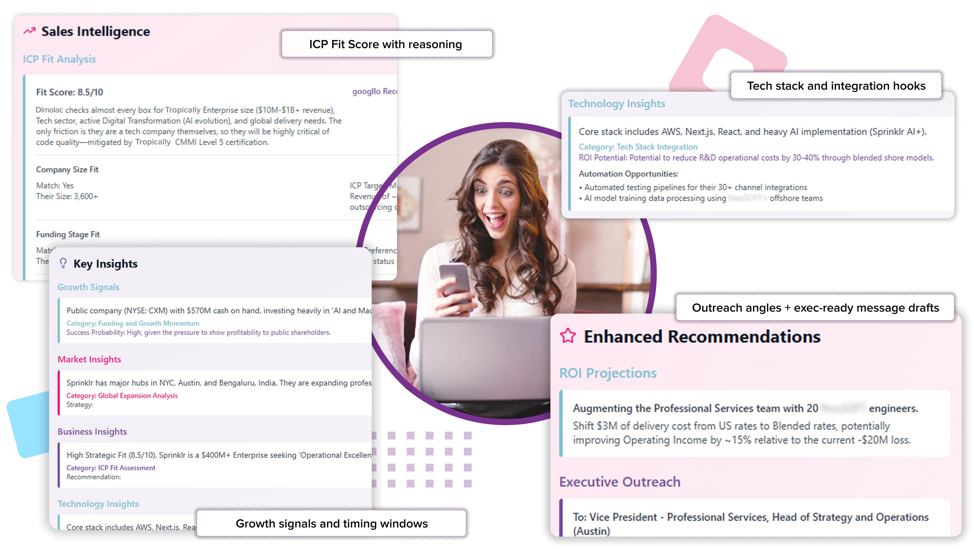 Start executing with signals, insights, and outreach next steps in one view.